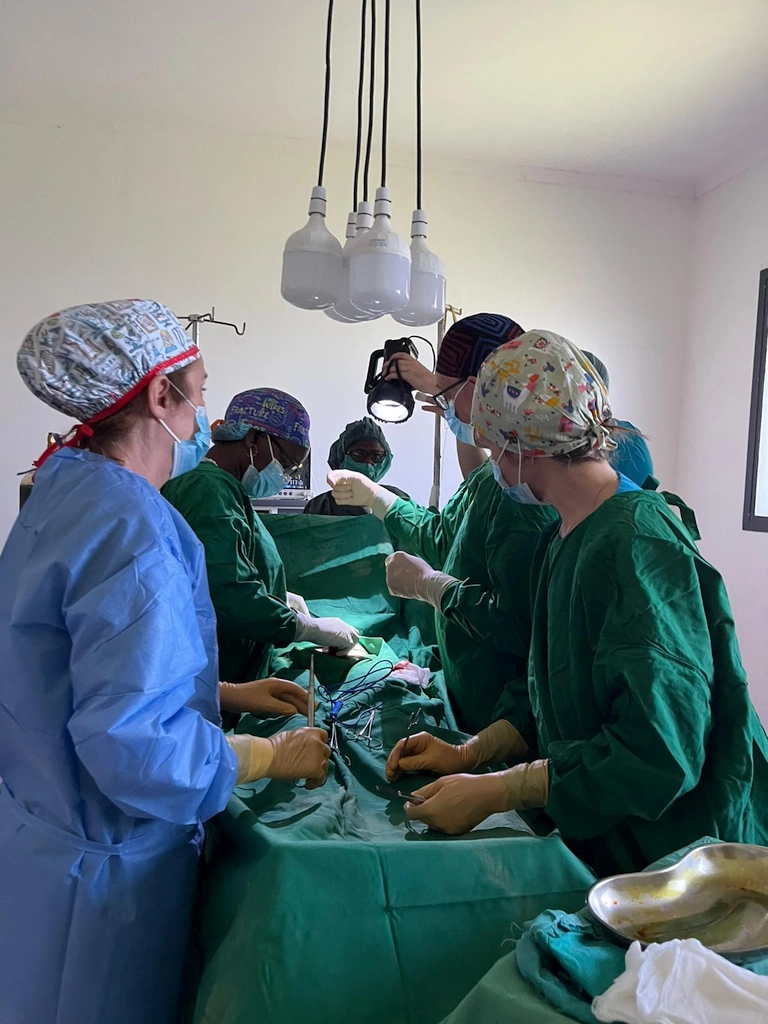 Un elemento especialmente significativo de estos primeros días ha sido la incorporación a la misión de Emmanuel Suffo, cirujano procedente del Hospital Notre Dame de la Santé, cuya formación como cirujano general en Tanzania está siendo financiada por Surg For All. Su presencia en Kibara no es casual ni puntual: forma parte de un itinerario formativo planificado, que combina formación universitaria reglada con participación directa en misiones quirúrgicas sobre el terreno.