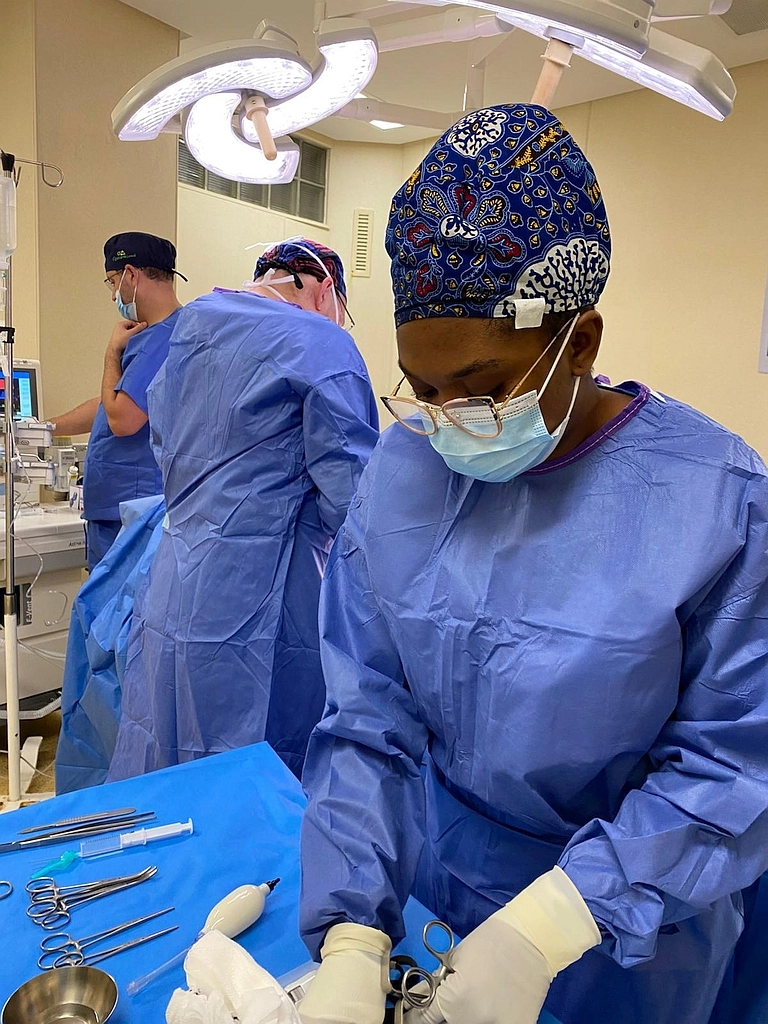 La historia de Hilda está profundamente unida al crecimiento del Hospital Notre Dame de la Santé. Su participación en misiones previas con Surg For All, su desempeño en quirófano y su capacidad de aprendizaje la convierten en un referente del equipo local. En esta ocasión, su objetivo es dar un salto más y especializarse en instrumentación laparoscópica, un área clave para el futuro del hospital tras la llegada del nuevo set de laparoscopia adquirido por Surg For All gracias a la generosidad de un donante particular.